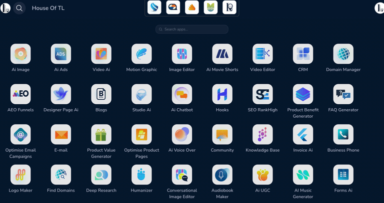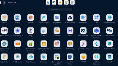 Access our growing suite of AI app platform built to streamline business automation and marketing. Integrates features such as marketing materials, funnel and website creation, AI video production, CRM, business phone, and email automation.